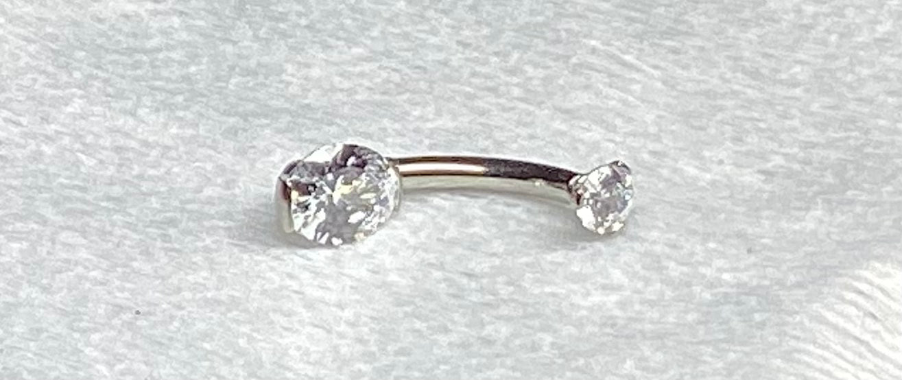 12g 7/16 Ti 2 Prong Oval Curved Barbell CZ