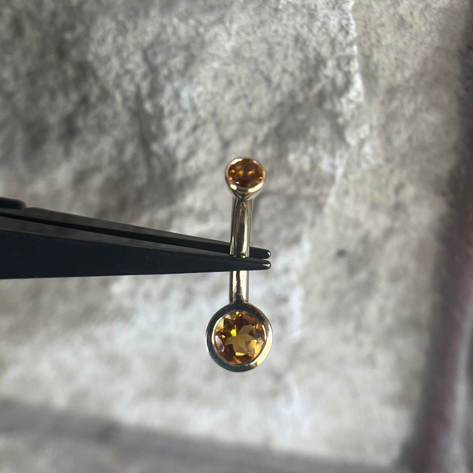 12g 7/16 Yellow Gold Curved Barbell with Threaded 3mm Tapered Bezel Top and Fixed 5mm Open Back Bezel Bottom (Citrine AA)